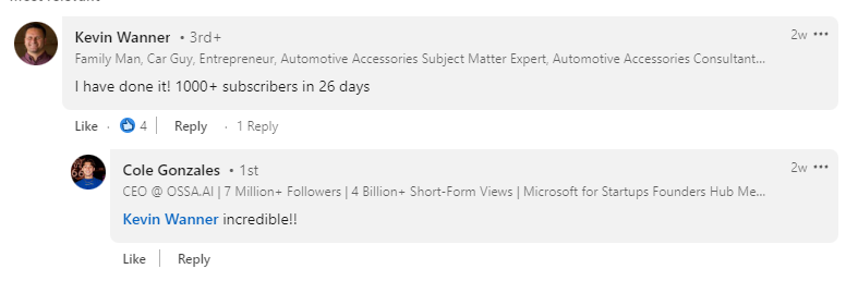 Take Kevin, for example. He gained 1,000 YouTube subscribers in 26 days using OSSA.AI.